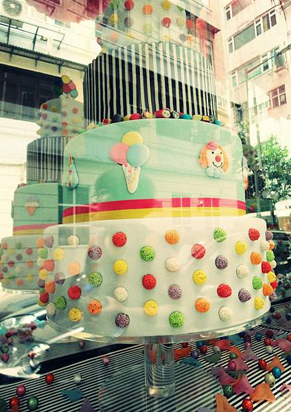 一間蛋糕裝飾店的櫥窗,顏色好可愛。