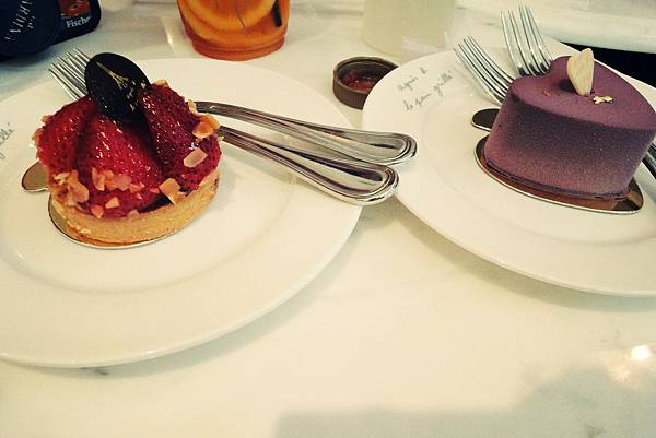 我們點了四杯飲料,兩個小蛋糕分著吃。